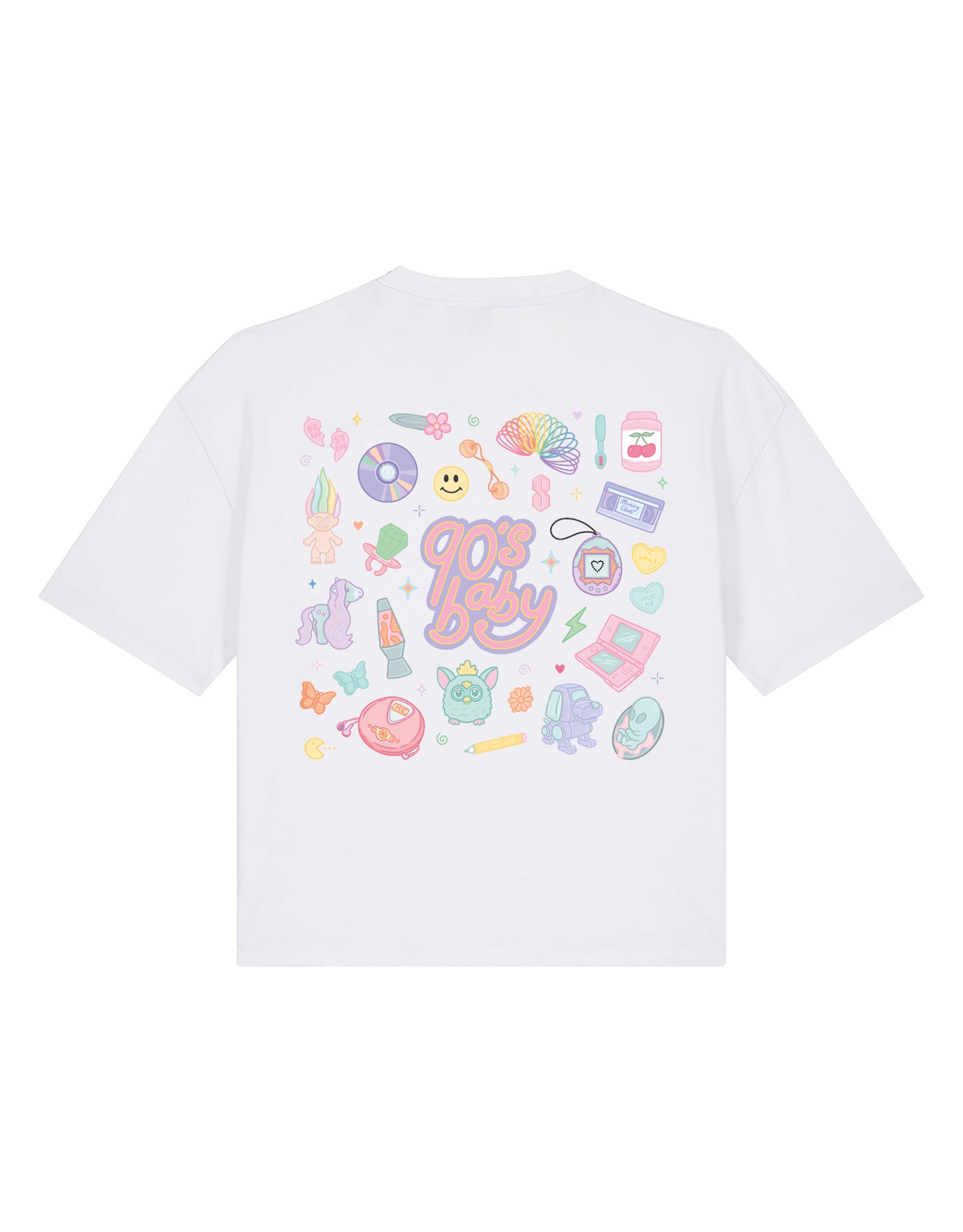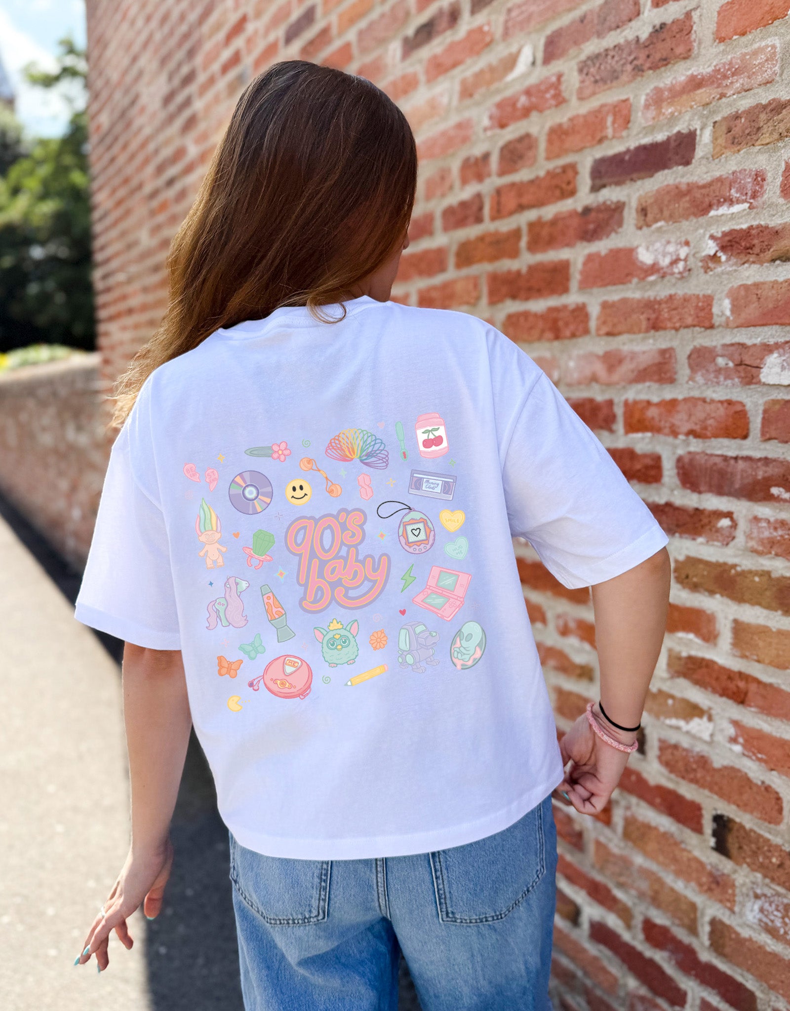Our 90s Baby women’s boxy tee brings nostalgic fun to a modern silhouette. Crafted from organic cotton, it features a relaxed boxy fit and a bold 90s inspired print. Slightly cropped and easy to style for laid back days. Soft, breathable fabric keeps it comfortable all day long. A playful staple for lovers of all things 90s.