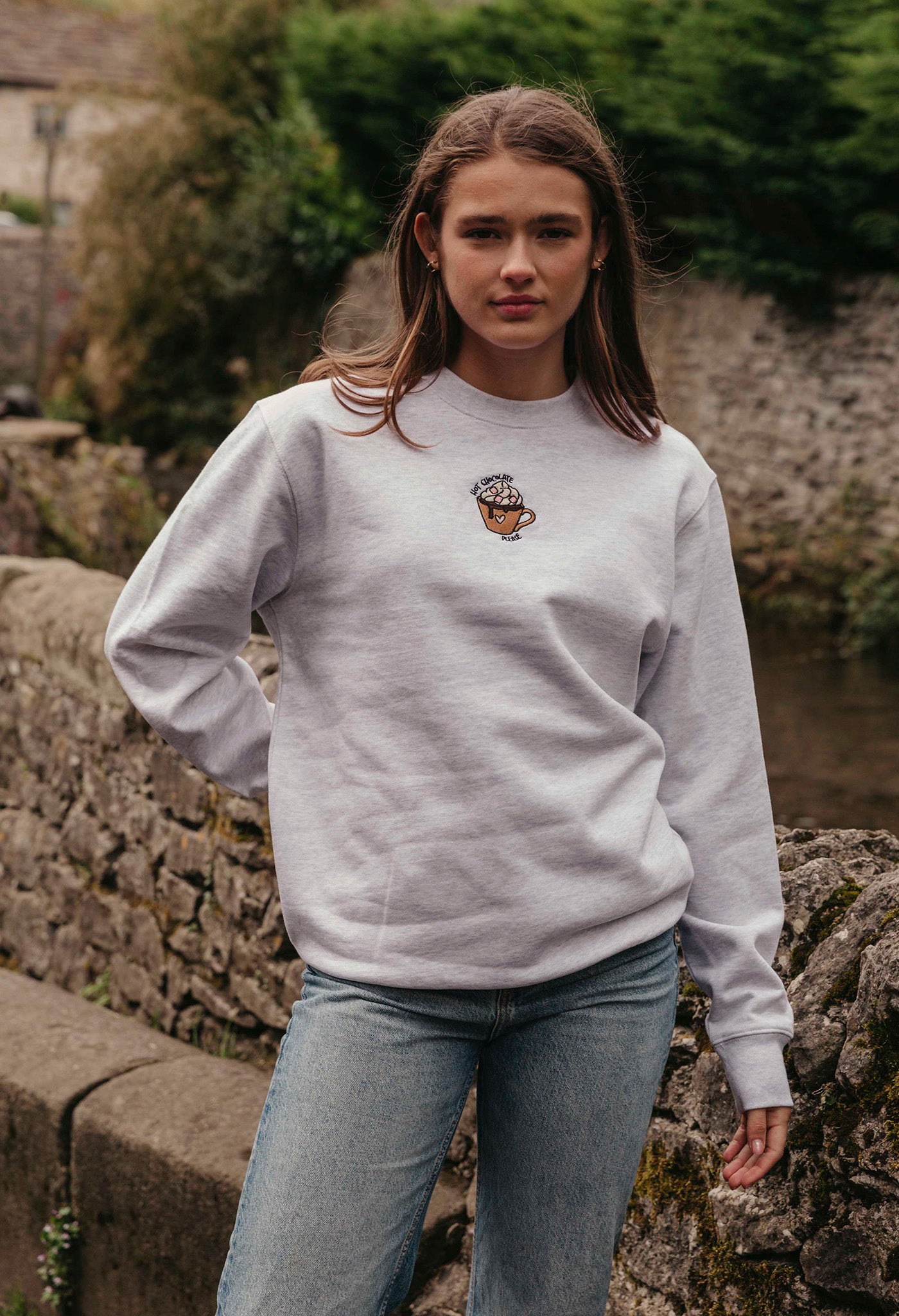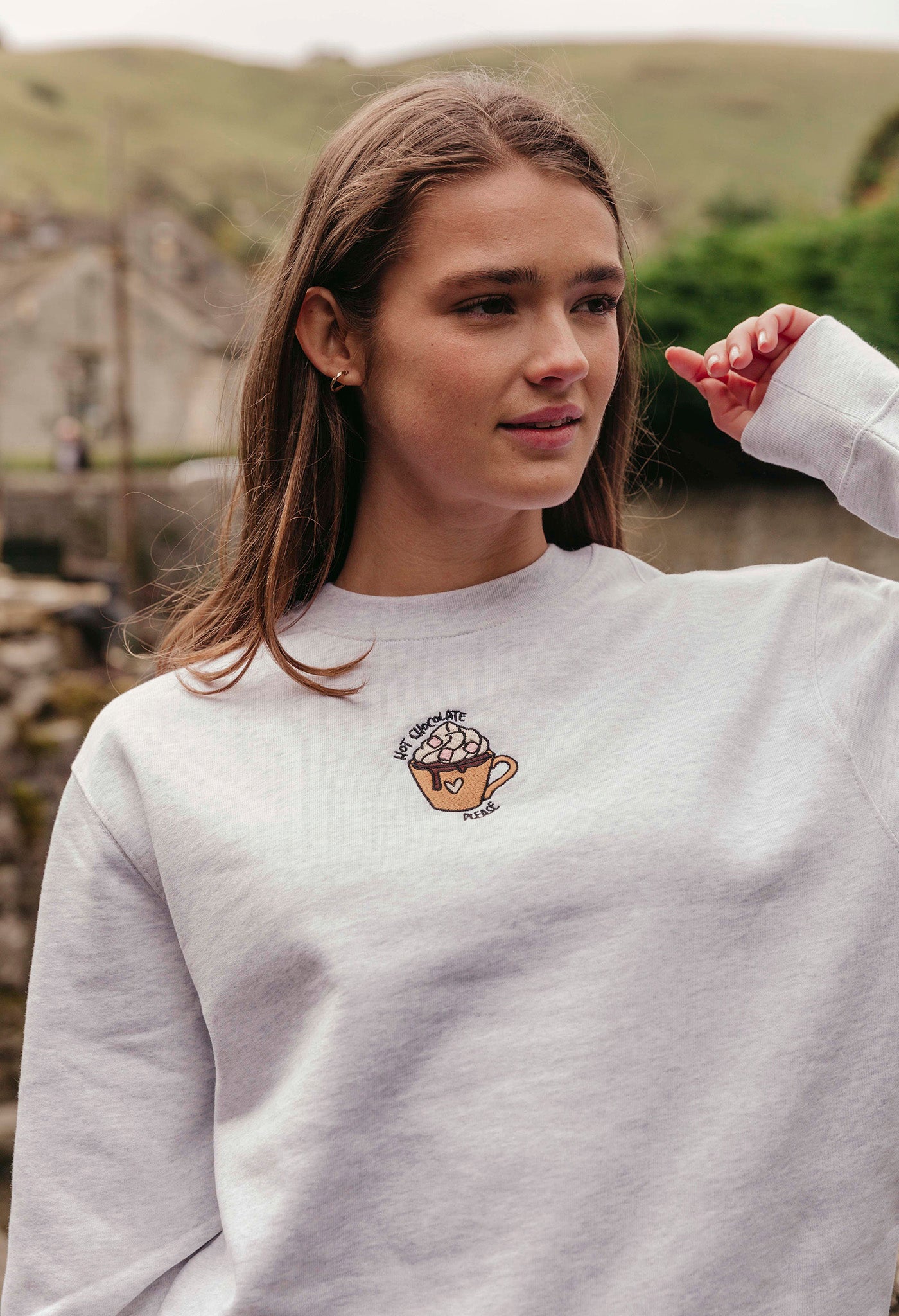 Hot Chocolate Embroidered Organic Cotton Sweatshirt