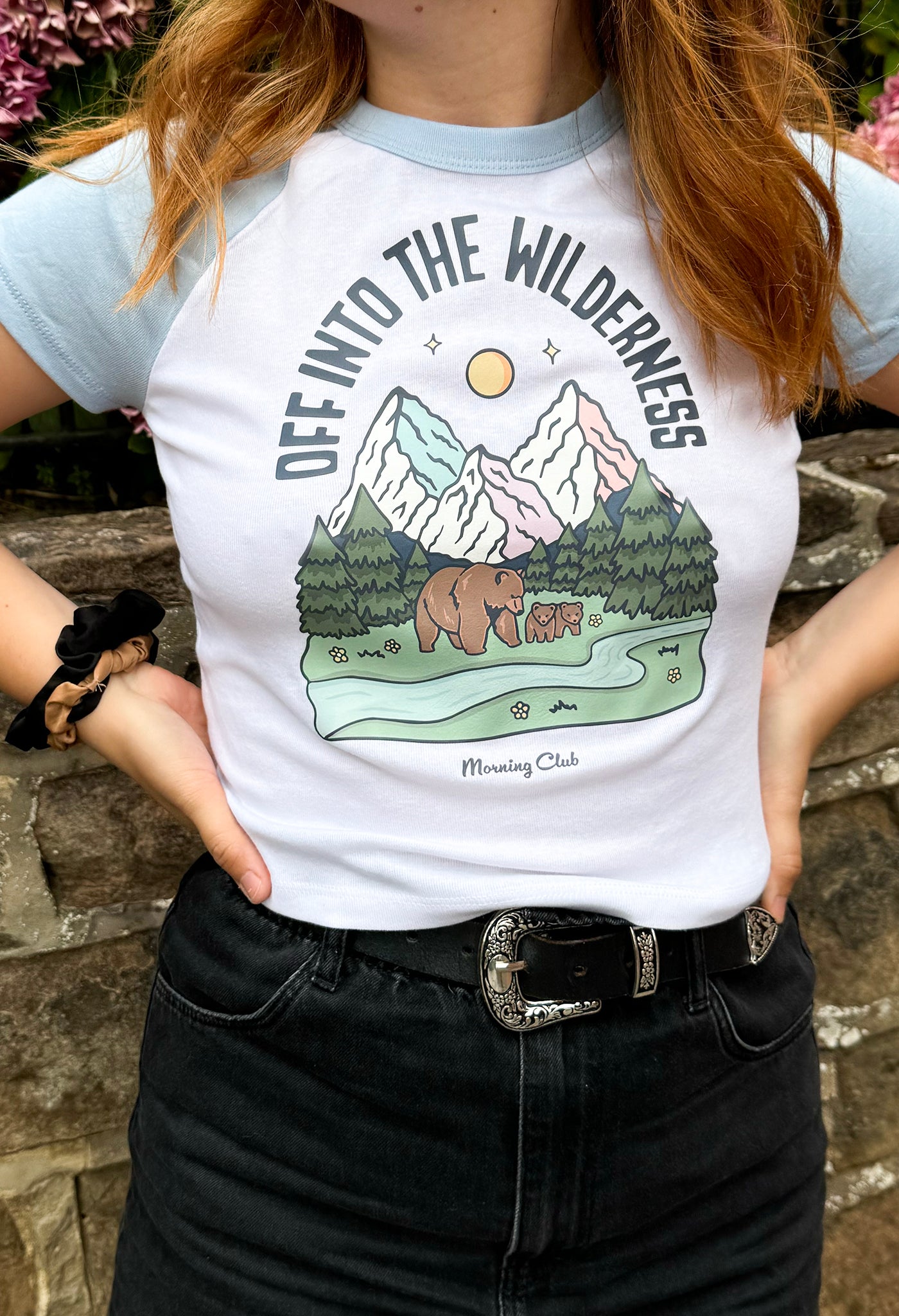 This tee was made for those who crave the freedom of the great outdoors. The printed design evokes the beauty of nature, while the soft, flexible fabric keeps you comfortable no matter where the trail leads. Whether you're tackling a rugged hike or simply enjoying the fresh air, this baby tee will be your go-to companion for living your wildest dreams.
