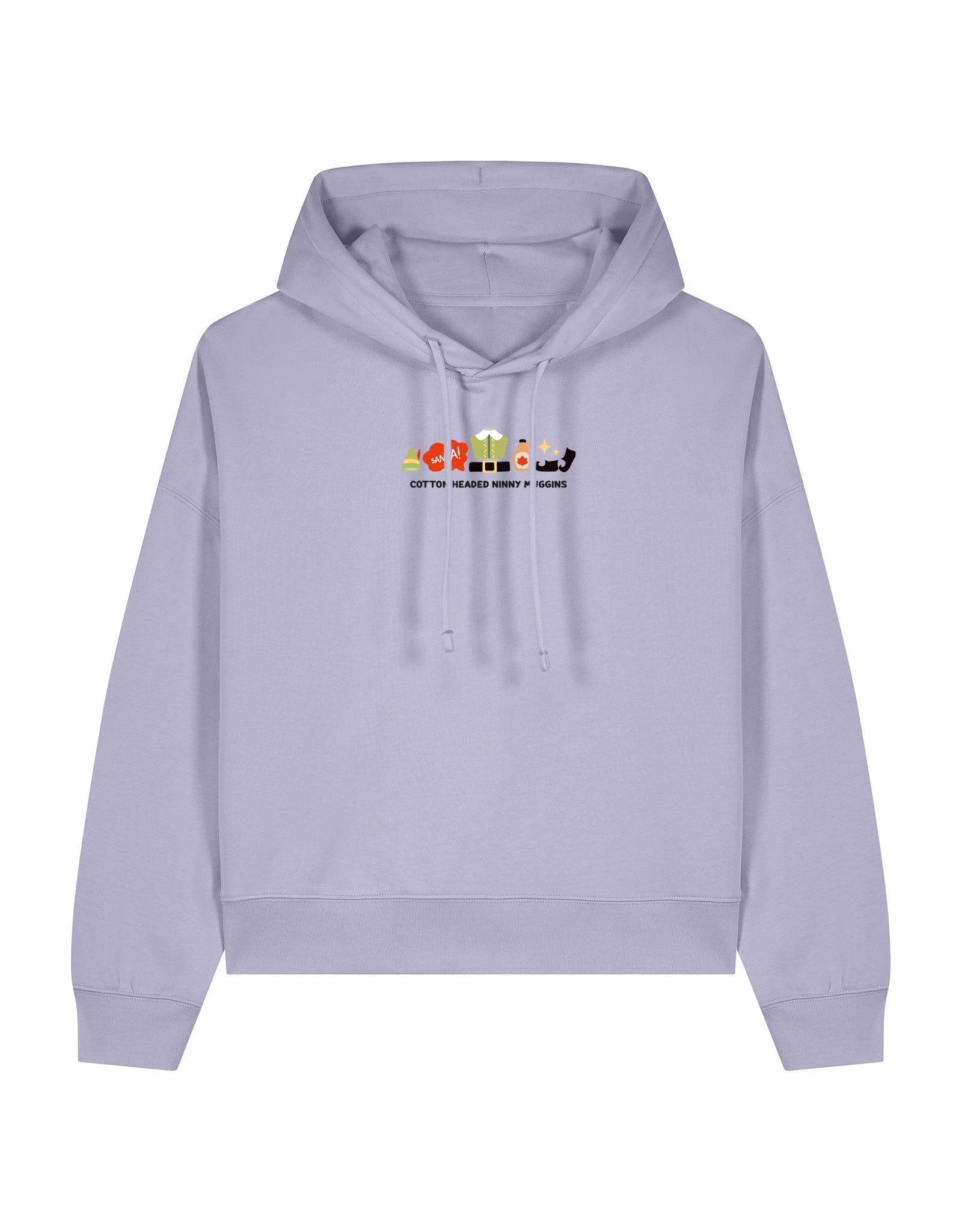 Elf movie inspired boxy hoodie with embroidered festive quote. Cosy organic cotton design. A fun winter gift for Christmas lovers.