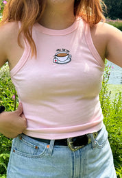 Spill The Tea Embroidered Micro Rib Racer Vest