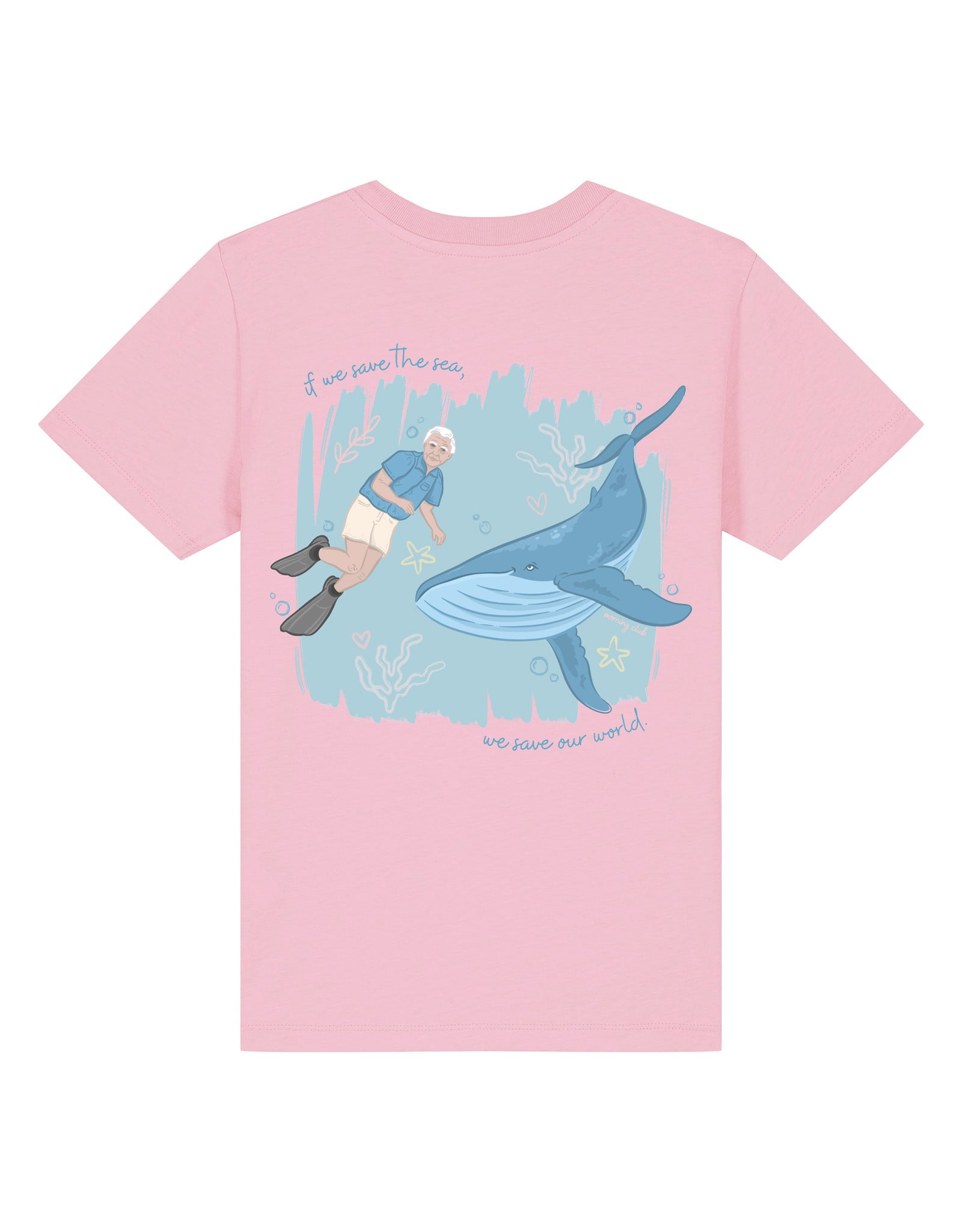Designed for little ocean lovers, this tee features a playful David Attenborough inspired Save The Sea back print and simple front graphic. Made from soft organic cotton for comfort throughout busy days. The illustration encourages curiosity about marine life. Durable enough for play, gentle on skin. Big message for small adventurers.