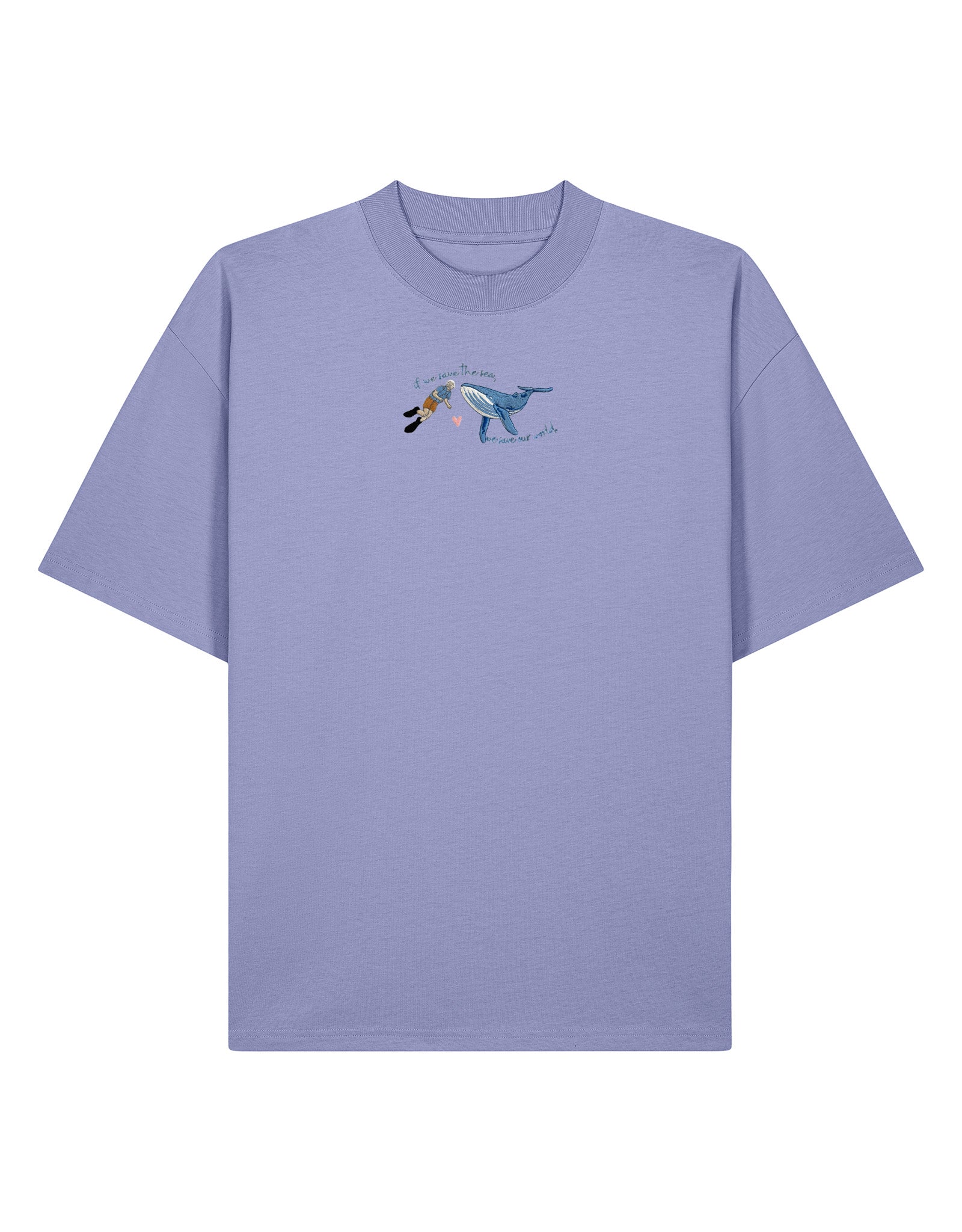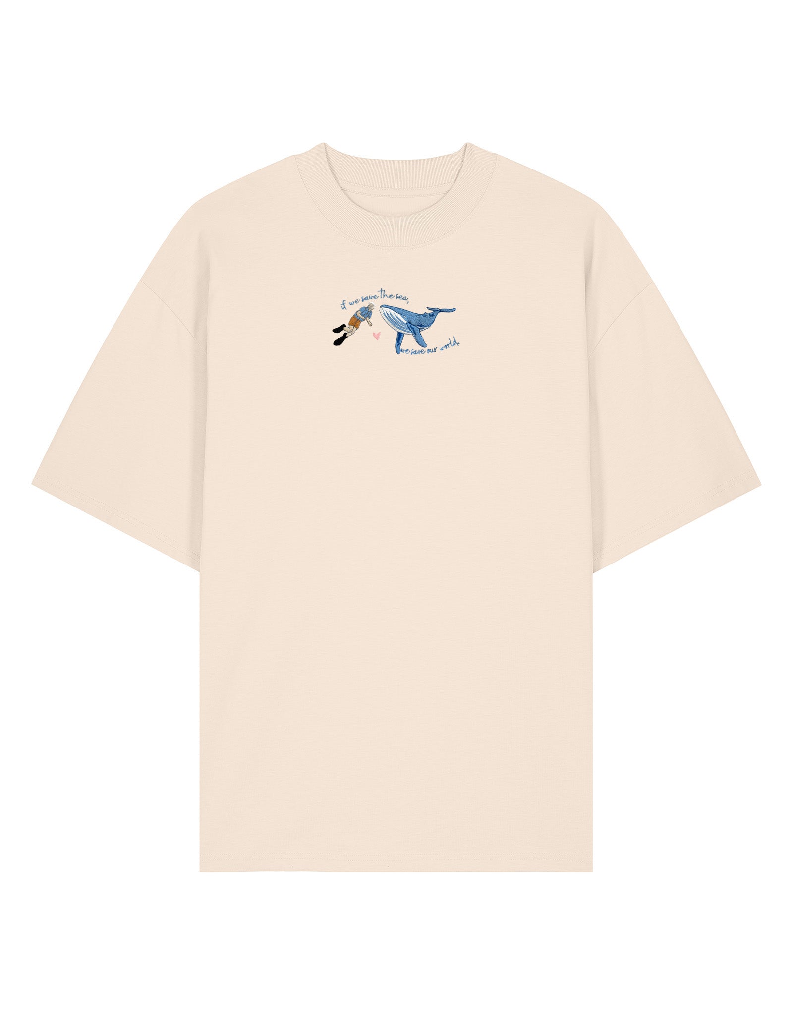 Shop our oversized organic cotton t-shirt with Save The Sea embroidered front design. Sustainable unisex relaxed fit tee. Minimal ocean inspired graphic.