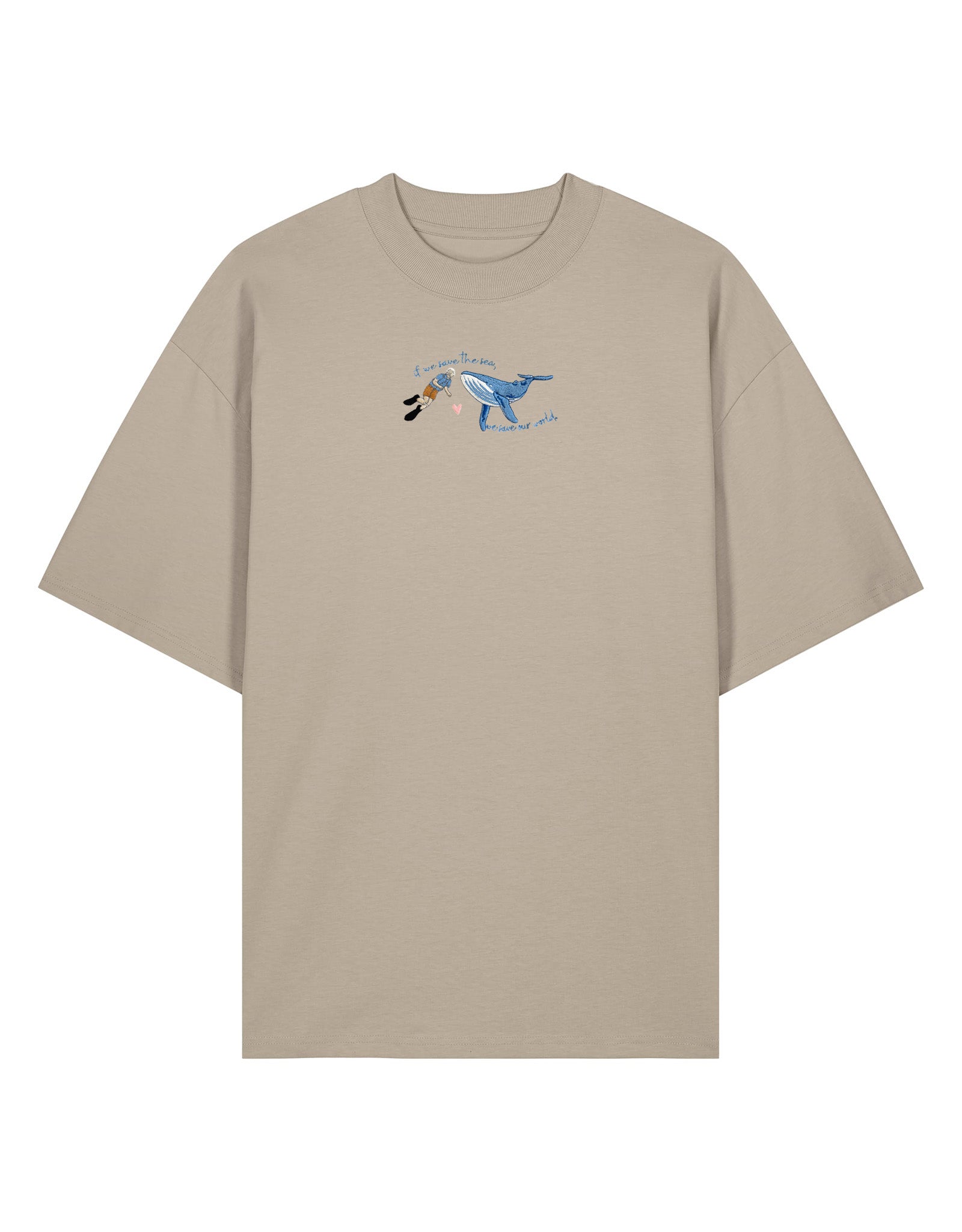 A relaxed oversized fit meets premium embroidered detail. Our David Attenborough inspired, Save The Sea design is stitched on the front for a clean, elevated finish. Made from soft organic cotton for all-day comfort. Designed to feel effortless and timeless. Comfort and craftsmanship combined.