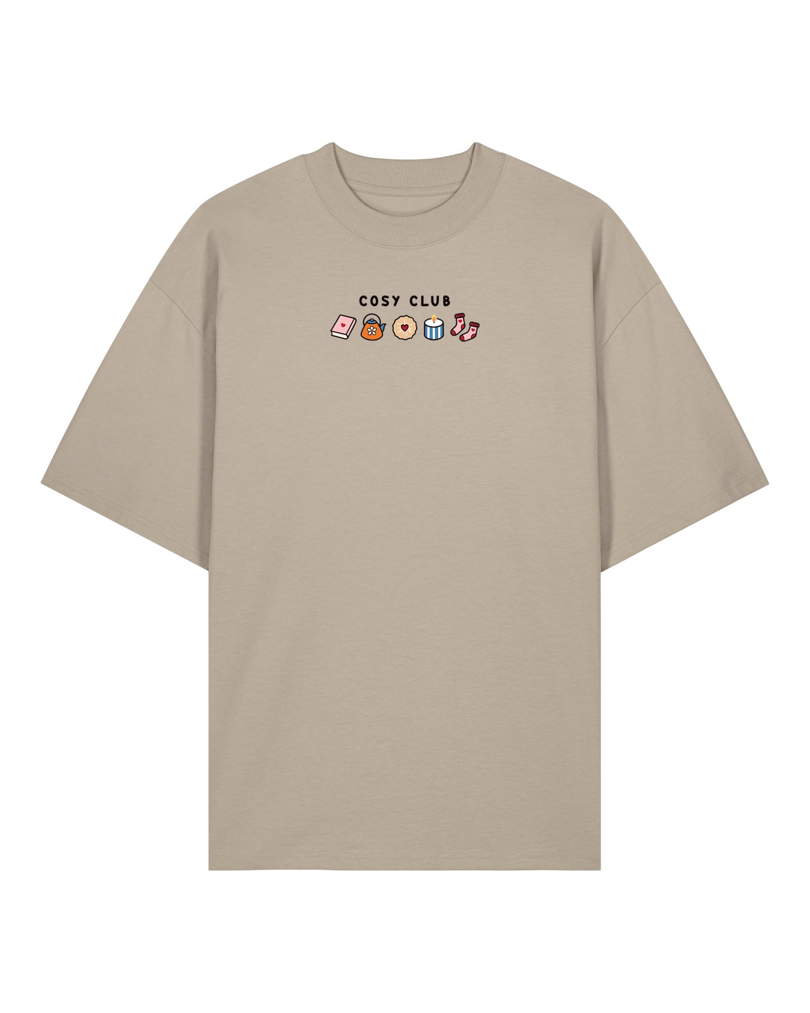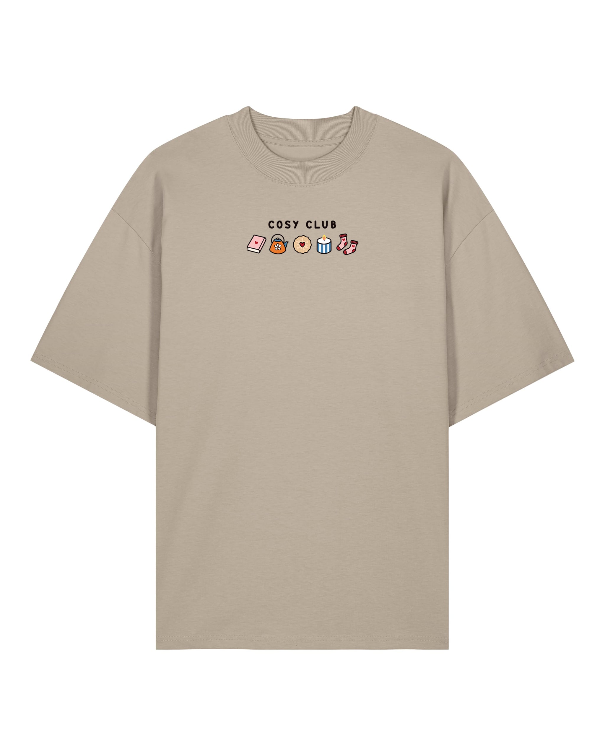 Our Cosy Club embroidery oversized tee celebrates all the best autumn comforts, books, tea, socks, biscuits, and candles. Designed for a relaxed, laid back fit, it’s the ultimate piece for cosy days and effortless style. Whether you’re layering it up or wearing it solo, this tee blends comfort, charm, and quality for the perfect everyday look.