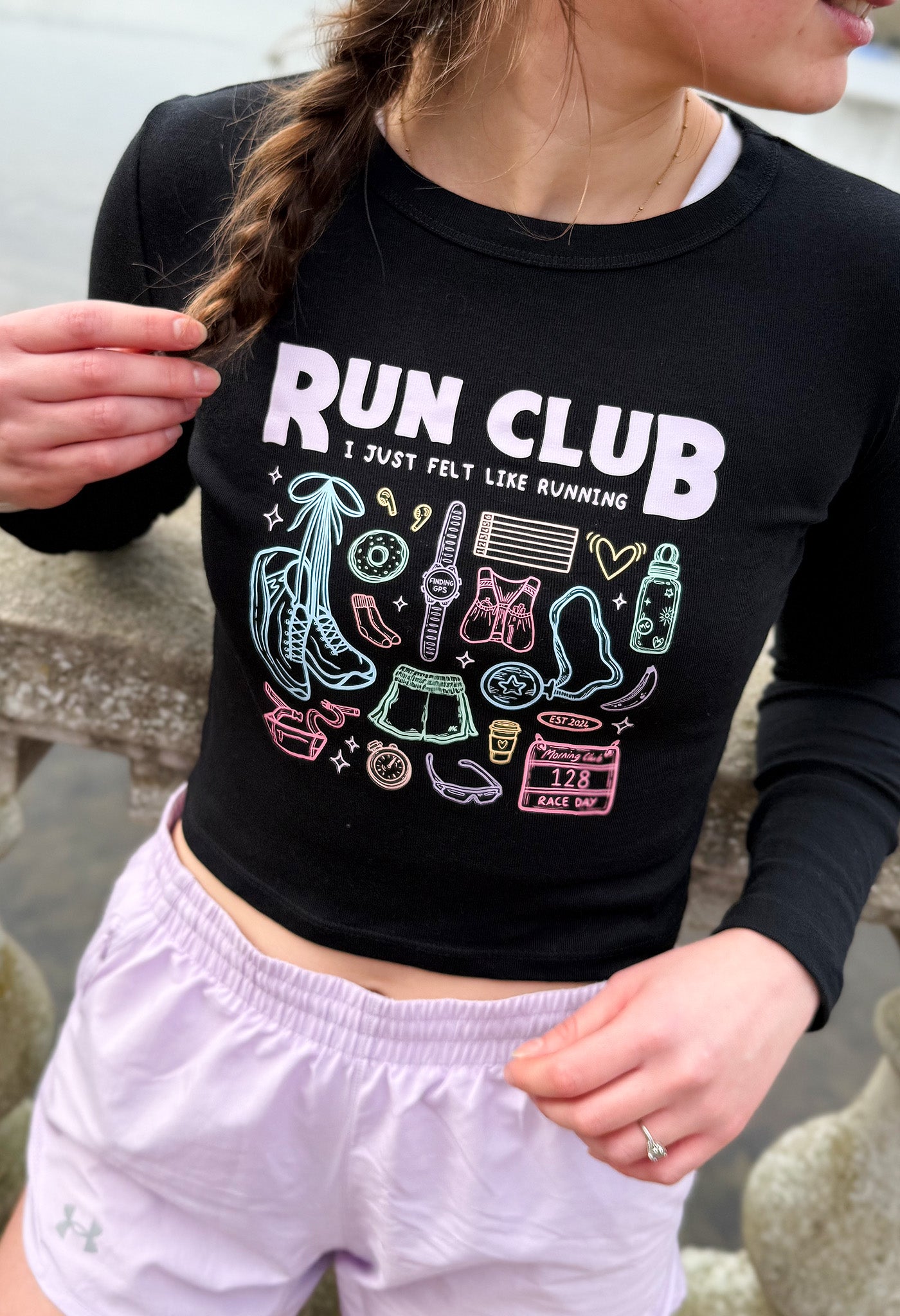 Celebrate the runner’s journey with our Run Club design, a playful collection of hand-drawn icons capturing the essence of race day. From well-worn trainers and finish-line medals to water bottles and post-run coffee, every detail is a nod to the moments that make running more than just a sport. Topped off with bold "Run Club" lettering and the phrase "I Just Felt Like Running," this design is for those who lace up and hit the ground running, no matter the pace.