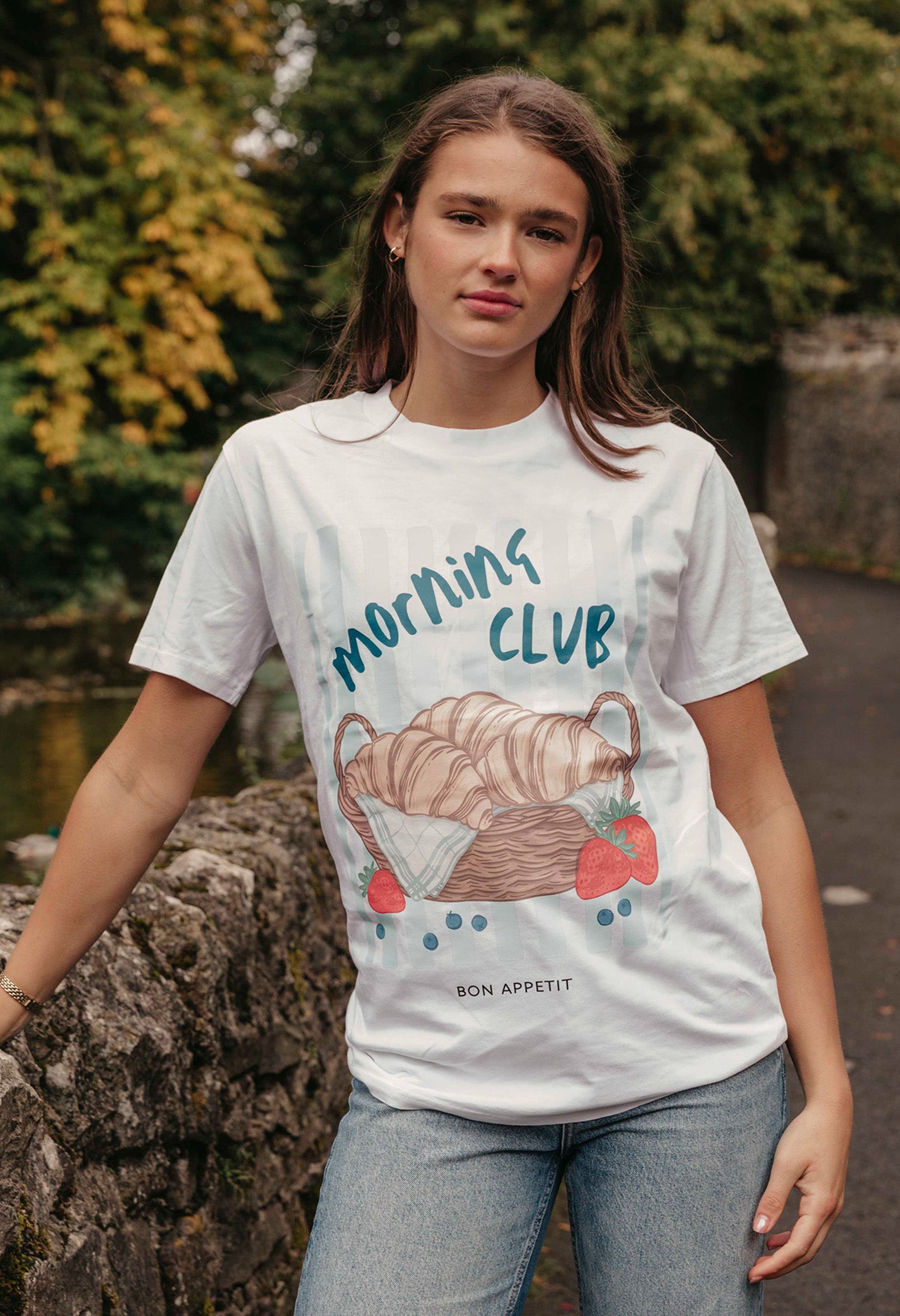 This Croissants t-shirt is the perfect way to add a touch of Parisian flair to any outfit. The soft, breathable organic cotton fabric keeps you cool and comfortable, while the eye-catching graphic print makes a stylish statement. Whether you're running errands or meeting friends for brunch, this versatile tee will have you looking and feeling your best.