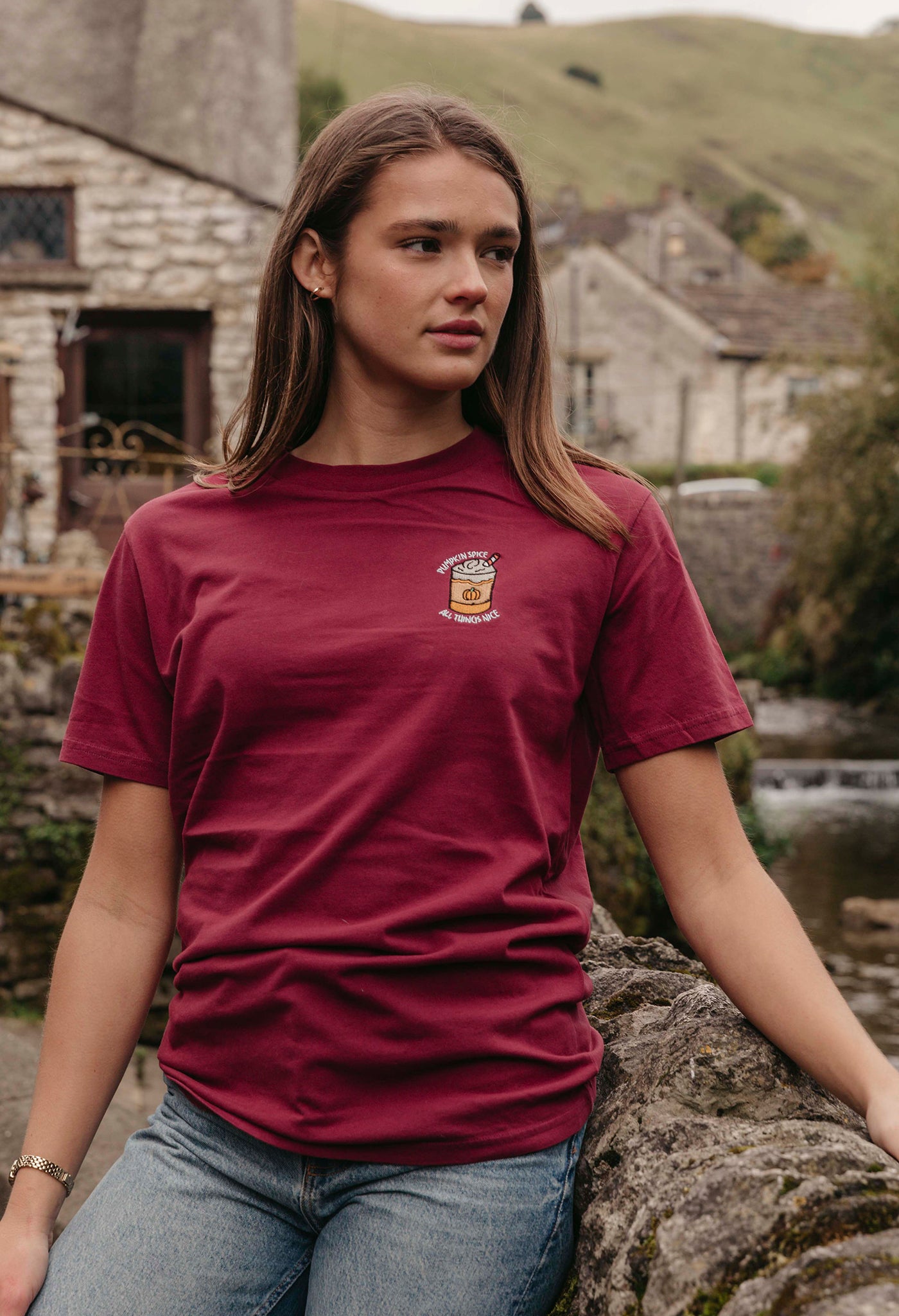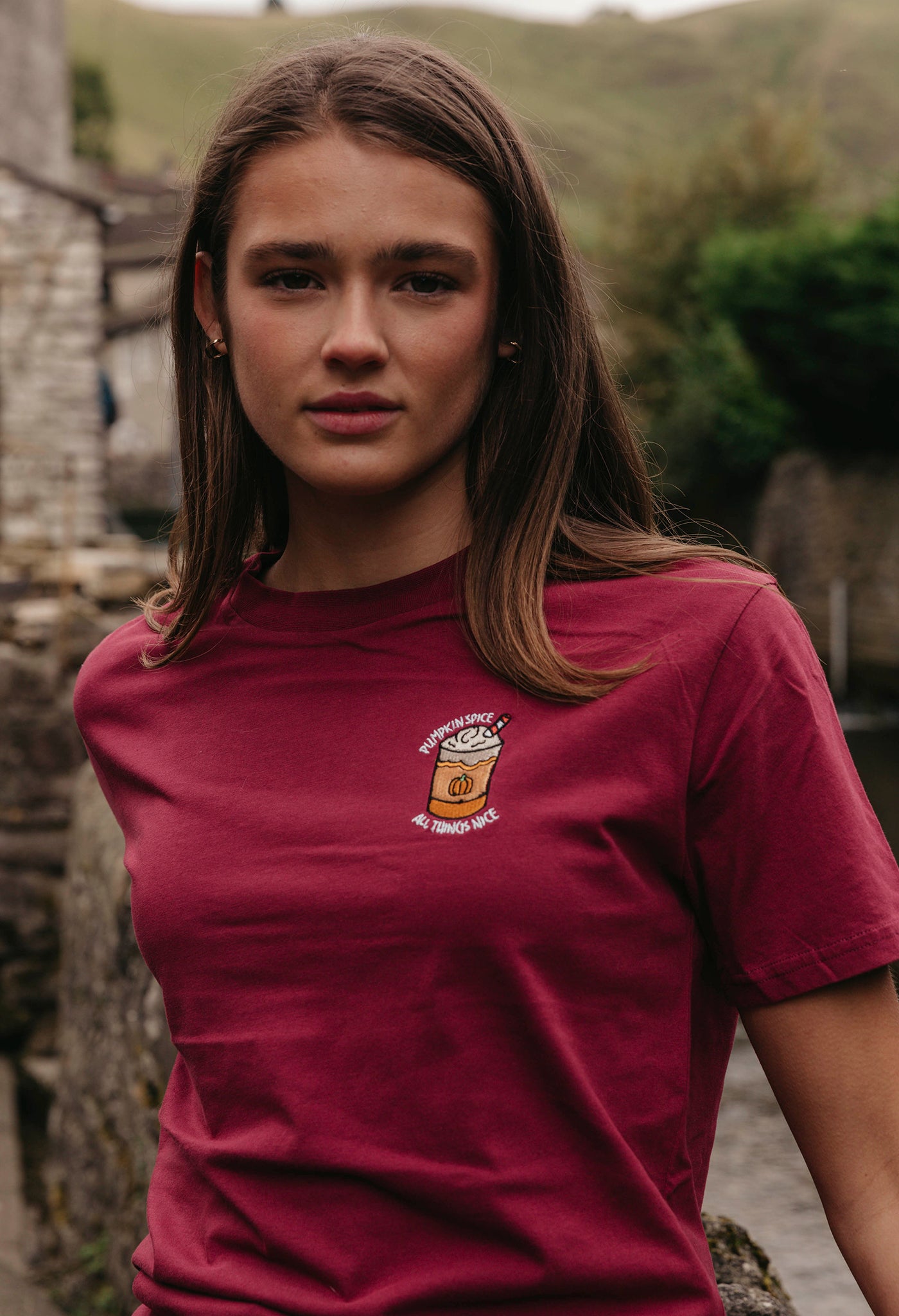 Pumpkin Latte Embroidered Organic Cotton T-Shirt