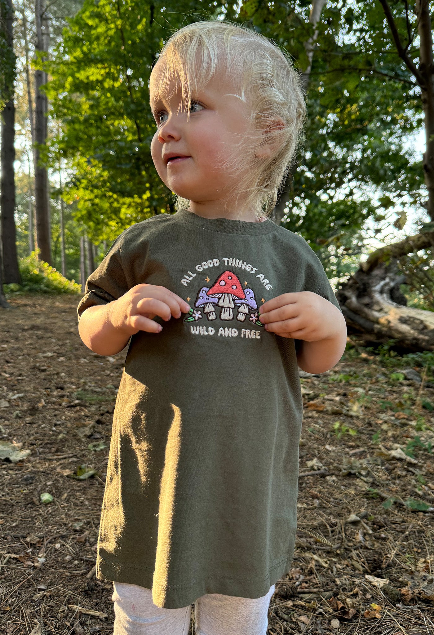 Wild Mushrooms Embroidered Organic Cotton Childrens T-Shirt