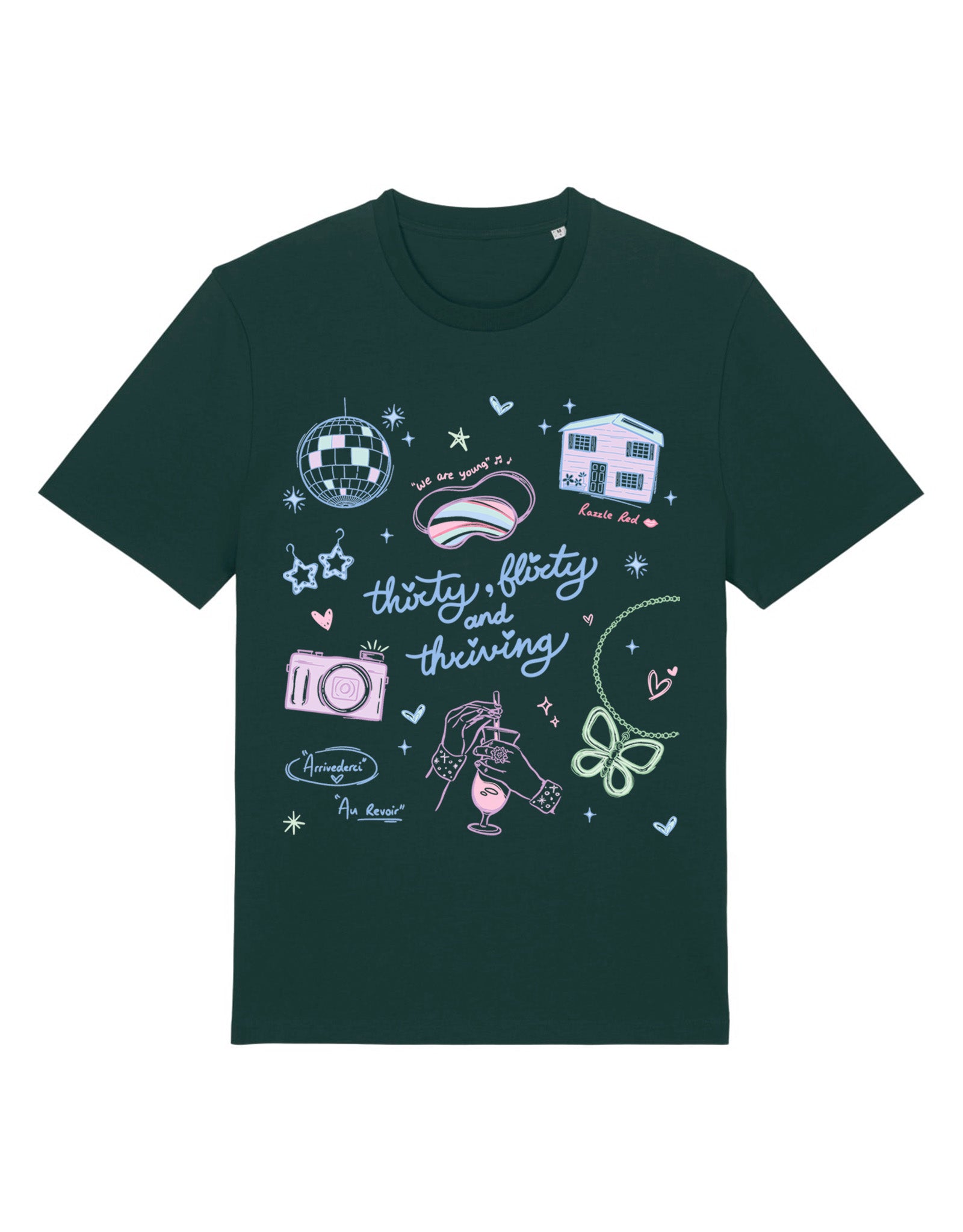 Meet the Thirty, Flirty & Thriving unisex tee, a feel good classic inspired by the ultimate coming of age film, 13 Going on 30. Printed on soft, breathable organic cotton, it’s designed for everyday wear with a relaxed, easy fit. The playful illustrated print celebrates confidence, friendship, and embracing your main character era. Perfect for birthdays, brunch dates, or just romanticising your thirties (or any age, honestly). A timeless tee you’ll keep reaching for, year after year.