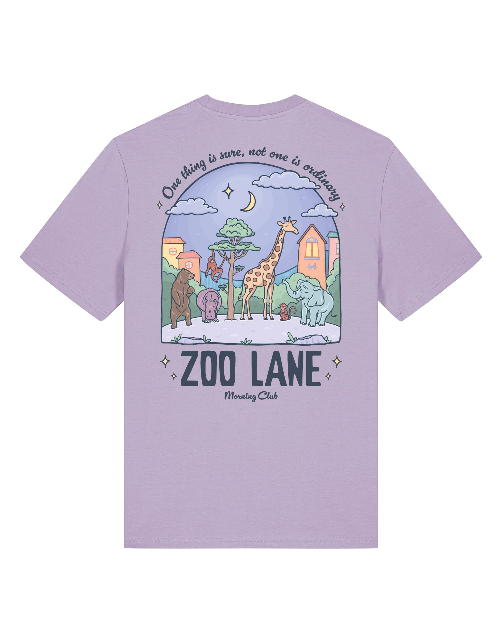The print brings the enchanting zoo neighborhood to life, showcasing a playful illustration of animals under a starlit sky, complete with friendly giraffes, elephants, and mischievous monkeys. Above the scene, a heartwarming quote reads, "One thing is sure, not one is ordinary!" which is a gentle nod to the show's theme of embracing uniqueness and friendship.